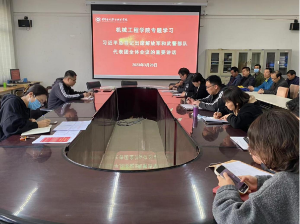 3月28日下午,机械工程学院在5号实训馆5211会议室组织专题学习活动,深入学习研讨习近平总书记出席解放军和武警部队代表团全体会议时的重要讲话,学院全体教职工参加学习会。学习会由院党总支副书记张嫚主持。