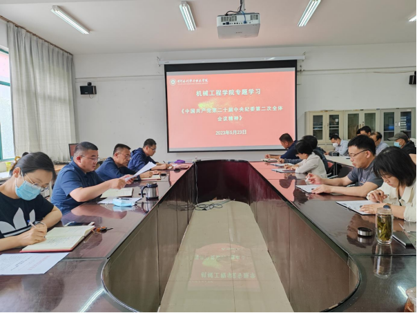 5月23日下午,机械工程学院在5号实训馆5211会议室组织专题学习活动,深入学习研讨中国共产党第二十届中纪委第二次全体会议精神,学院全体教职工参加学习会。学习会由院党总支书记王振强主持。