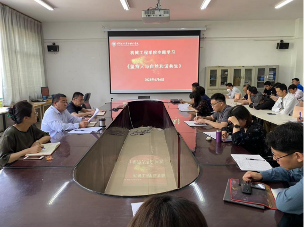 6月6日下午,机械工程学院在5号实训馆5211会议室组织专题学习活动,深入学习研讨《坚持人与自然和谐共生》,学院全体教职工参加学习会。学习会由院党总支书记王振强主持。