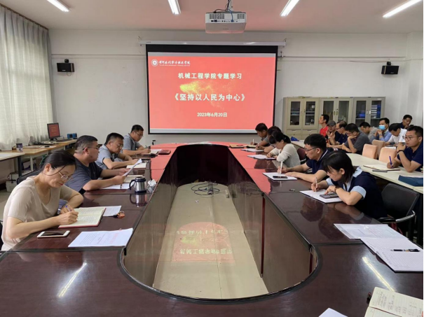 6月20日下午,机械工程学院在5号实训馆5211会议室组织专题学习活动,深入学习研讨《坚持以人民为中心》,学院全体教职工参加学习会。学习会由院党总支书记王振强主持。