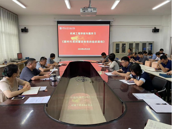 6月20日下午,机械工程学院在5号实训馆5211会议室组织专题学习活动,深入学习研讨《新时代党的建设和党的组织路线》,学院全体教职工参加学习会。学习会由院党总支书记王振强主持。
