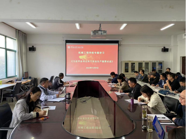 10月9日下午,机械工程学院在5号实训馆5211会议室组织专题学习活动,深入学习研讨习近平总书记关于安全生产重要论述,学院全体教职工参加学习会。