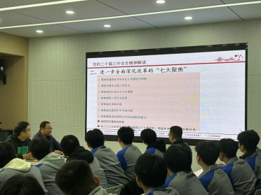 11月20日下午,机械工程学院党总支书记杨彦涛在5号实训馆5211会议室,为学生支部全体教师和2024年下半年党课培训班学员上专题党课,党课内容是学习贯彻党的二十届三中全会精神。