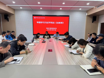 10月15日下午,机械工程学院在5号实训馆5211会议室组织专题学习活动,学习习近平总书记重要讲话和全国教育大会精神。深入学习了《习近平在全国教育大会上强调 紧紧围绕立德树人根本任务 朝着建成教育强国战略目标扎实迈进》和习近平同志《论教育》等内容。学院全体教职工参加学习会。