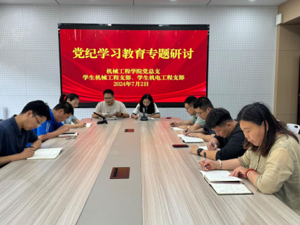 7月2日下午,机械工程学院学生机械工程支部和学生机电工程支部全体党员在5号实训楼5211室开展党纪学习教育专题读书班研讨会。
