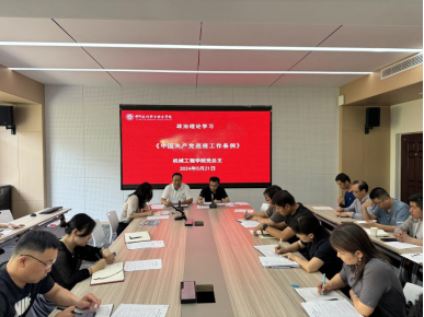 521日下午,机械工程学院党总支在5号实训楼5211室开展党纪学习教育专题学习《中国共产党纪律处分条例》和《中国共产党巡视工作条例》学院全体教职工参加学习会。