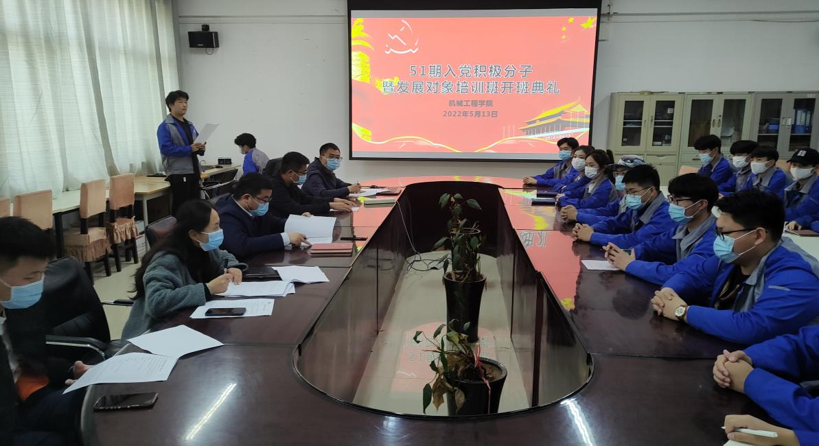 5月13日中午,机械工程学院第51期党课培训班开班典礼在实训楼5211正式举行。院党总支书记王振强、学生机械工程支部组织委员王志伟、学生机电工程支部书记王瑨、组织委员杜金博和宣传委员王浩宇出席开班典礼,本期党课培训班部分学员代表参加开班典礼。