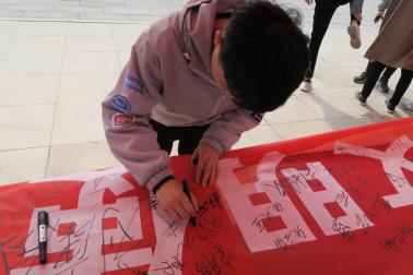 3月5日中午,我院“弘扬雷锋精神,争当文明使者”雷锋月志愿活动签字仪式在青年大道隆重举行,我院党员及各班代表参加了签字仪式。拉开了学雷锋主题活动月的序幕,努力打造学雷锋新常态,践行核心价值观。