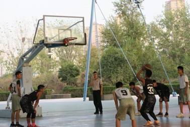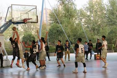 我院代表队在小组赛中以四连胜的优异成绩冲入四强对决赛中。比赛开始,裁判一声令下,每个球员都动了起来,他们像蓄势待发的猛虎,一下窜了起来。赛场上他们一个个用心拼博,动作连贯,配合默契,投篮准确。他们在赛场上,挥洒着汗水,展示着自我。场外观看的同学们更是热情高涨,欢呼声、呐喊声,声声入耳,让篮球比赛的氛围不断升温。我院参赛队员面对敌方的强大攻势,不但没有失去信心反而更加认真防守、阻挡,越战越勇。经过近半个小时的激烈角逐,比赛终于画上了圆满的句号。我院新生代表队也不负众望,取得了第三名的好成绩。