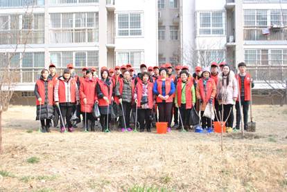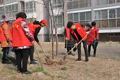 上午九点,志愿者与社区党员干部汇合完毕,拉开了植树活动的序幕,大家分工协作,挥锹铲土,扶苗踏实,提桶浇水,各环节都精心对待,栽得认真,干得卖力,整个植树活动现场一片热火朝天的劳动景象。植树结束后志愿者们为小树苗修枝剪叶,同时义务清理城市花园小区的社区垃圾,帮助社区居民营造了良好的居住环境,受到了社区干部和小区居民的一致好评。