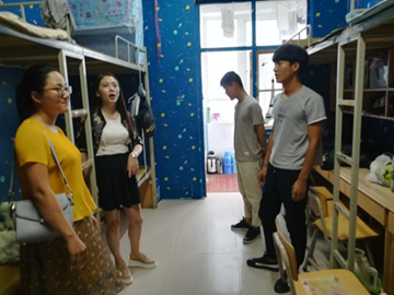 8月27日下午六点,我院分团委书记侯静、全体辅导员以及学生会主要干部对我院12号和13号楼学生宿舍卫生进行了检查。