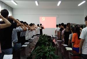 6月3日上午十点,我院学生第一党支部在SY5211召开会议,分团委书记侯静、学生党支部张宏祥级和15级辅导员王艳凤参加了本次会议,会议在庄严的《国际歌》拉开帷幕。本次会议由学生党支部书记张宏祥主持。按照党员发展程序,首先由入党介绍人侯静和王艳凤介绍了各位发展对象的近期表现;接着,就刘琳等23名同学是否能够加入党组织进行表决。表决之后,学生党支部书记张宏祥宣读支部决议,一致同意刘琳等23名预备党员加入党组织。最后,刘琳等23名同学依次发表个人感言。他们纷纷表示加入党组织后,一定要严格要求自己,遵守党的纲领,执行党的决议,争取做一名优秀的共产党员。学生党支部书记张宏祥对各位同学表示祝贺,并希望他们在党组织这个温暖的大家庭中不断地提升自己,努力成为社会的栋梁之才。