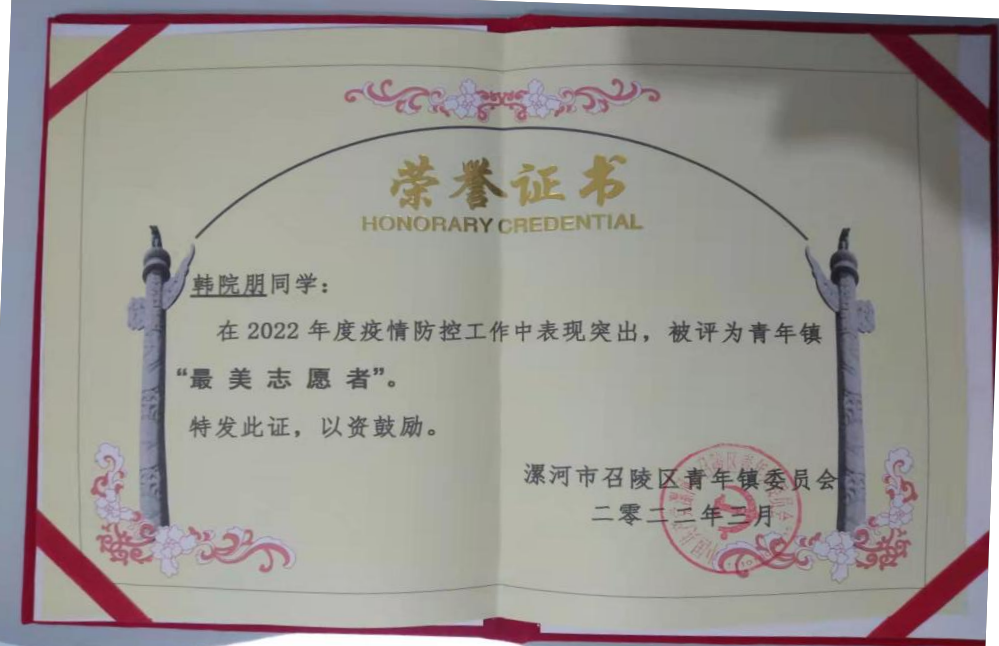 疫情无情人有情,疫情无情我先行。“作为新时代青年,更要成为一名有为青年,在疫情防控中,应当敢为人先,积极战疫。”在机械工程学院机制2003班韩院朋同学看来,在这个寒假,疫情再一次向我们冲来,我们要做的就是面对它,战胜它,自己没有理由不到抗疫战线贡献自己的一份力量。