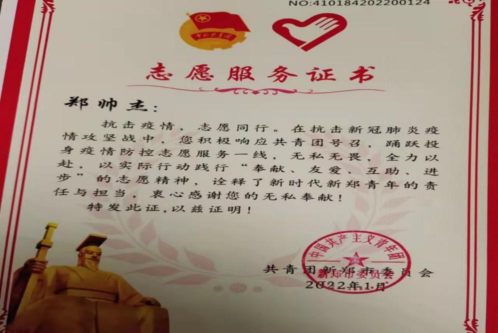 在这次疫情防控中这样的例子不止一例,还有我们机械工程学院机制2102郑帅杰同学。他说:“参加村里组织的志愿者实践活动让我深深地体会到我们社会的强大凝聚力。”这更是反映了当代青年不畏艰险、甘于奉献的精神风貌。