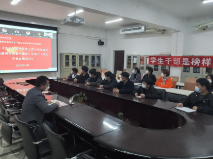 为进一步提高我院学生干部的综合素质,增强学生自我教育、自我管理、自我服务的意识。10月20日,机械工程学院在会议室SY5211召开了学习《关于学联学生会工作人员改进作风服务同学的若干规定》并签订《学生干部自律公约》的会议,此次会议以线下线上方式同时进行,由杜金博老师主持,全体学生会成员参会。