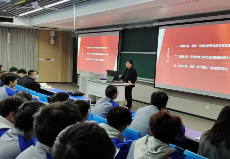 孟卫兵教授以“学习贯彻落实二十大精神的几点思考”为主题,从准确认识、讲清“中国化时代化的马克思主义”、加强认识,挑明跳出治乱兴衰历史周期率的两个答案、深刻认识,讲透“两个确立”的决定性意义三个方面,对党的二十大精神进行了深入细致的解读。孟教授讲座思想深刻,内涵丰富,既有很强的政策理论性,又有很强的实践指导性,对我院广大师生准确领会和全面把握党的二十大的丰富内涵和精髓要义,切实增强贯彻落实的自觉性和坚定性,具有重要的指导意义和推动作用。