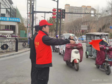 志愿者们身着红马甲,头戴小红帽,手执交通小红旗,在交警同志的指导下,积极引导广大市民自觉按照交通信号灯出行,劝导不文明交通行为,帮助行动不便老人过马路,提醒行人注意出行安全,向市民展示黄河水院学子的良好作风和形象,成为街头一道靓丽的风景线。