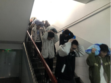 随着地震预警信号的发出,防震减灾演练正式开始。同学们在辅导员及宿舍长的指导下迅速抱头、闭眼、蜷曲身体、降低身体重心,躲在课桌下并尽可能用枕头、衣物保护好头部,避免自己被掉落的碎石砖瓦砸伤。一分钟后地震结束,根据紧急疏散警报信号,全体学生按照由低层至高层的顺序开始紧急疏散撤离,所有学生用防护物护住头部,按照预定的逃生路线,快速、有序地撤离到学校北门道路两侧开阔地带。在辅导员清点完人数后,指挥员下达口令演练顺利结束。整个演练过程紧张有序、有条不紊,全体师生安全疏散撤离,未发生拥挤、踩踏等事故,达到了预期的演练效果。