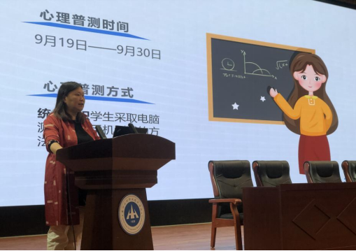 曹林英通PPT展示的形式,围绕心理健康的重要性、如何更好地适应大学生活、调节心理状态的方法及学校心理健康教育中心基本情况等内容进行了系统、详细的介绍,为新生适应全新的学习和生活环境,培养出积极阳光的心态,建立和谐的人际关系提供了必要的帮助。随后,曹林英就心理普测的流程、心理测评的工作须知、心理测评安排及注意事项等展开说明,并要求全体新生积极参与,顺利完成此次心理普测工作。