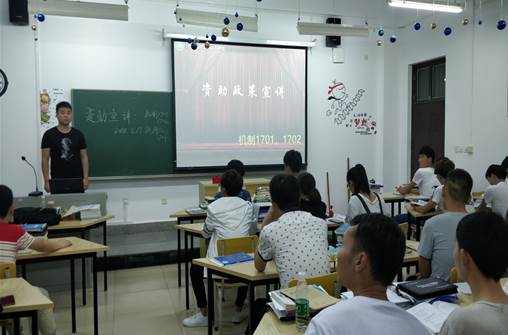 2018年5月17日晚上七点,我院资助工作部在JX3202教室举行了以“资助政策宣讲”为主题的宣讲会。学生资助助理王文斌主持召开本次宣讲。机制1701、1702,汽修1703、1704四个班参加了本次宣讲大会。
