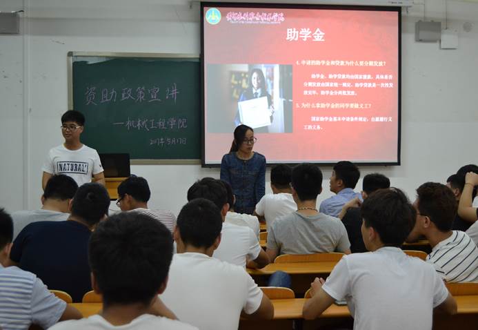 为响应学校号召,贯彻落实高校资助政策,做好精准资助,解读国家和学校的资助政策。我院于2017年5月17日晚上在JX3202教室举行了以“资助政策宣讲”为主题的演讲。出席此次宣讲的有王艳凤老师、学生资助助理王国文。大一、大二的资助宣传员参加了本次宣讲会。
