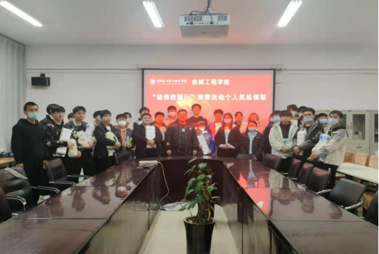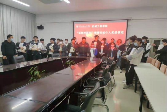 为了更好的激励学生们对诚信的观念,让诚信之风永驻校园。2021年11月26日,机械工程学院在SY5211举办了“诚信校园行”竞赛颁奖活动。本次活动由陈俊潮老师颁发奖品。