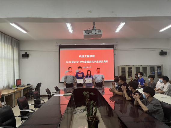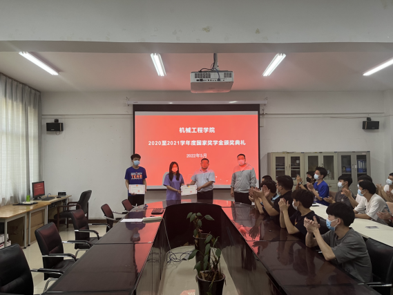 2021年5月18日下午,我院在SY5211举办了2020至2021年度国家奖学金颁奖典礼。机械工程学院王振强书记,资助专员陈俊潮、国家奖学金获得者、21级全体班级负责人参加了此次会议。