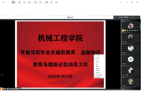 为落实立德树人根本任务,普及金融、征信基础知识,增强广大青年学生的诚信意识和责任意识,加大资助育人力度,机械工程学院响应学校号召于4月份积极开展学生资助诚信教育、金融知识教育及提前还款宣传。