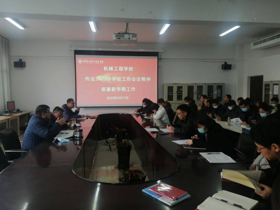 2023年2月17日上午,机械工程学院在学院会议室(SY5211)组织召开2022-2023第二学期工作会议,全体教职工参会,会议由党总支书记王振强主持。