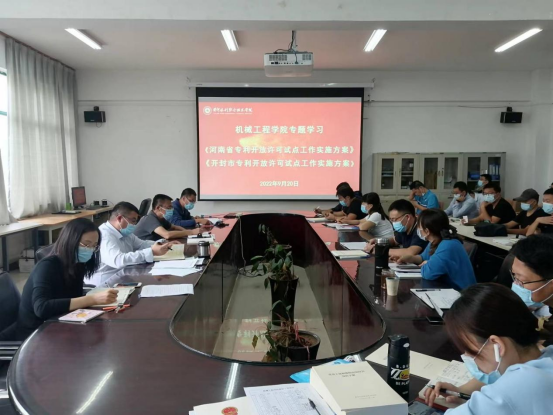 机械工程学院专题学习《河南省专利开放许可试点工作实施方案》
