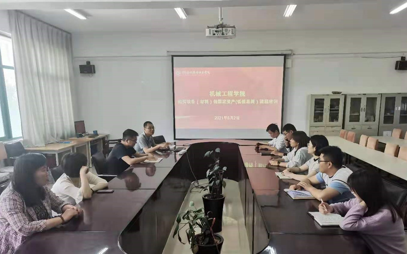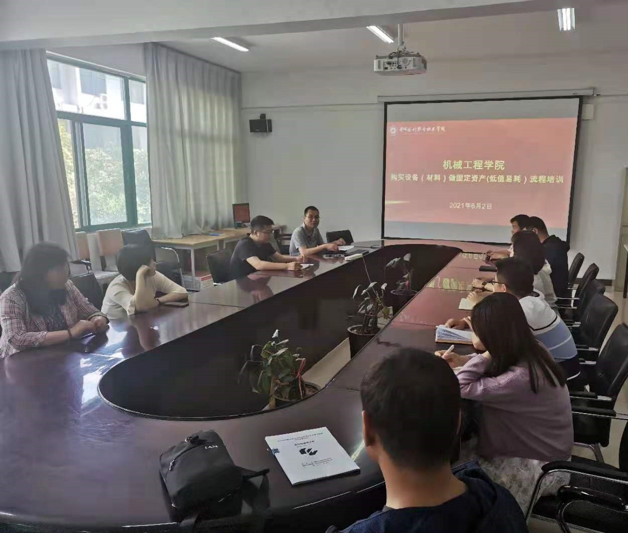 机械工程学院针对教师普遍反映新购设备是否做固定资产不明白不清楚的问题,于2021年6月2日在机械工程学院会议室(SY5211)面对学院老师开展学校资产管理制度培训,会议由沈艳河老师进行培训。