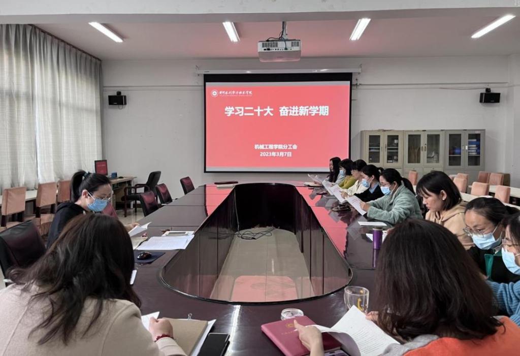 为全面贯彻落实党的二十大精神,团结引领广大女教职工积极投身“十四五”规划新征程,担当新使命,谱写新篇章,按照校工会委员会要求,3月7日下午,机械工程学院分工会在5号实训楼SY5211室开展“学习二十大奋进新学期”二十大精神专题学习,全体女教职工参加,学习活动由机械工程学院分工会主席张嫚主持。
