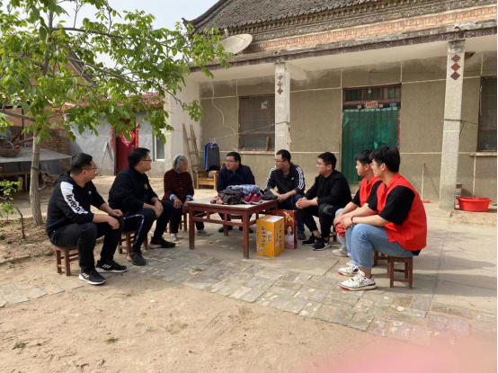 2023年4月12日上午,机械工程学院党总支书记王振强一行6人,深入郭景村帮扶对象郭银家走访慰问,助力乡村振兴。