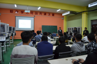 2019年4月16日下午14:30,机械工程学院在5号实训楼5106实训室举办了工业机器人技术讲座。讲座特邀北京华航唯实机器人科技股份有限公司产品总监谭龙庆先生做了以“产业需求驱动智能制造领域人才培养的变革”为主题的报告。谭龙庆总监以大量的数据和生动的案例指出技术升级带动产业变革,针对智能制造领域对人才的需求提出了培养目标和具体措施,促进了专业建设和专业发展。华航唯实认证培训部的赵陈樑博士以“强化认证合作体系,共育工业机器人人才”为题,围绕校企合作开展认证培训及认证优势做了进一步的讲解,为学生今后的发展指明了方向。