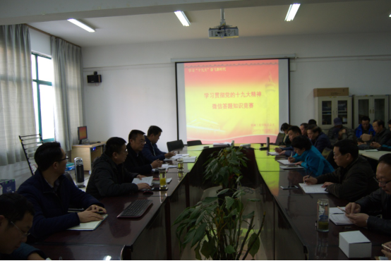 按照学校党委组织部《关于举办学习贯彻党的十九大精神微信答题知识竞赛的通知》精神要求,机械工程学院党总支进行了动员部署、周密安排,要求全体师生人人参与,达到“学生、教工支部全覆盖、党员干部全覆盖、师生员工全覆盖”的目标。形成人人学习十九大、人人宣传十九大精神的良好氛围。会后,全体教师一起进行了学习贯彻党的十九大精神暨微信答题知识竞赛活动。