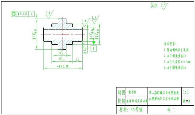 五、本届普通车工技能大赛赛题完全按照新国标法,最新的竞赛要求比赛,并且借鉴今年全国普通车工和数控车技能大赛试题,对工件精度级安全文明生产提高了要求,与全国大赛接轨。