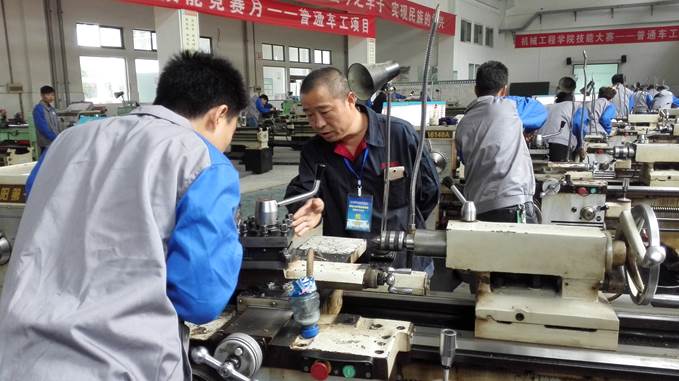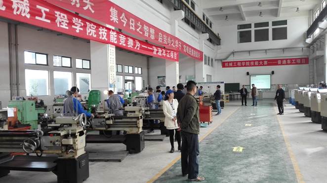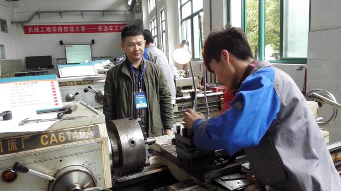 一、本届技能大赛从一开始就得到机械工程学院领导高度重视,院领导在会议上多次强调要求举办一届更加出色精彩的普通车工技能大竞赛,并且机械工程学院朱焕立院长、张延副院长亲临现场关心慰问参赛选手,给参赛选手加油鼓励。