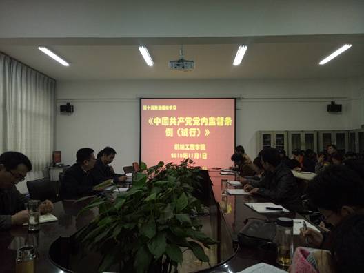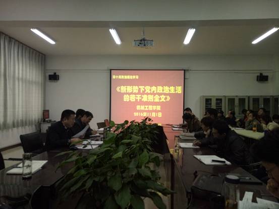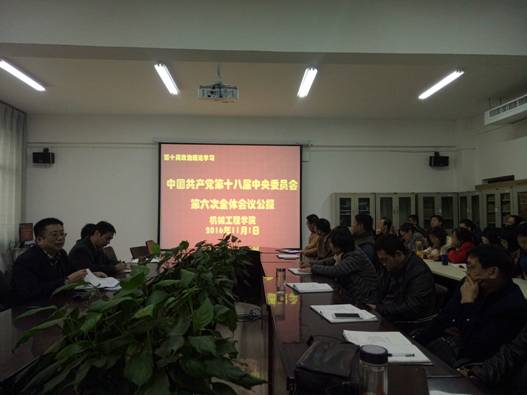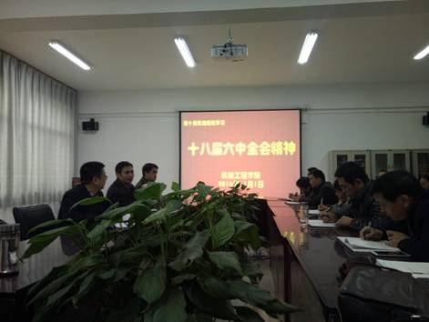 2016年11月1日下午,机械工程学院全体教职工在SY5211会议室进行政治理论学习,学习和总结刚刚结束的十八届六中全会精神。本次学习活动由党总支书记孙天星主持。