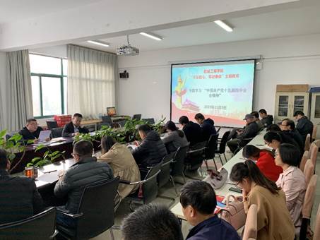 王振强带领大家深入学习了中国共产党十九届四中全会公报。党的十九届四中全会于2019年10月28日至31日在北京隆重召开。全会听取和讨论了习近平受中央政治局委托作的工作报告,审议通过了《中共中央关于坚持和完善中国特色社会主义制度、推进国家治理体系和治理能力现代化若干重大问题的决定》。全会号召,全党全国各族人民要更加紧密地团结在以习近平同志为核心的党中央周围,坚定信心,保持定力,锐意进取,开拓创新,为坚持和完善中国特色社会主义制度、推进国家治理体系和治理能力现代化,实现“两个一百年”奋斗目标、实现中华民族伟大复兴的中国梦而努力奋斗!