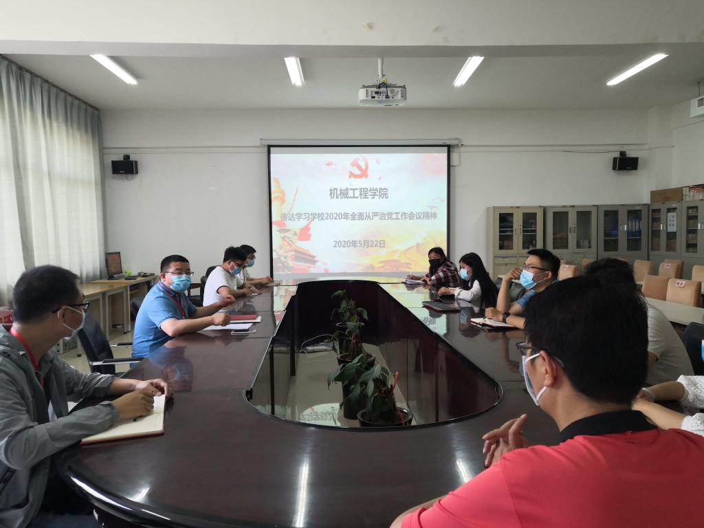 为深入贯彻学校2020年全面从严治党工作会议精神,扎实推进党的建设和全面从严治党,5月22日上午,在学院会议室(SY5211)召开专题会议,传达学习2020年学校全面从严治党工作会议精神。学院领导班子及行政坐班人员参加现场会议,其它教职工参加视频会议。会议由党总支书记王振强主持。