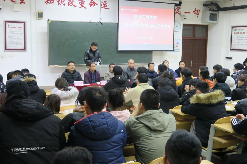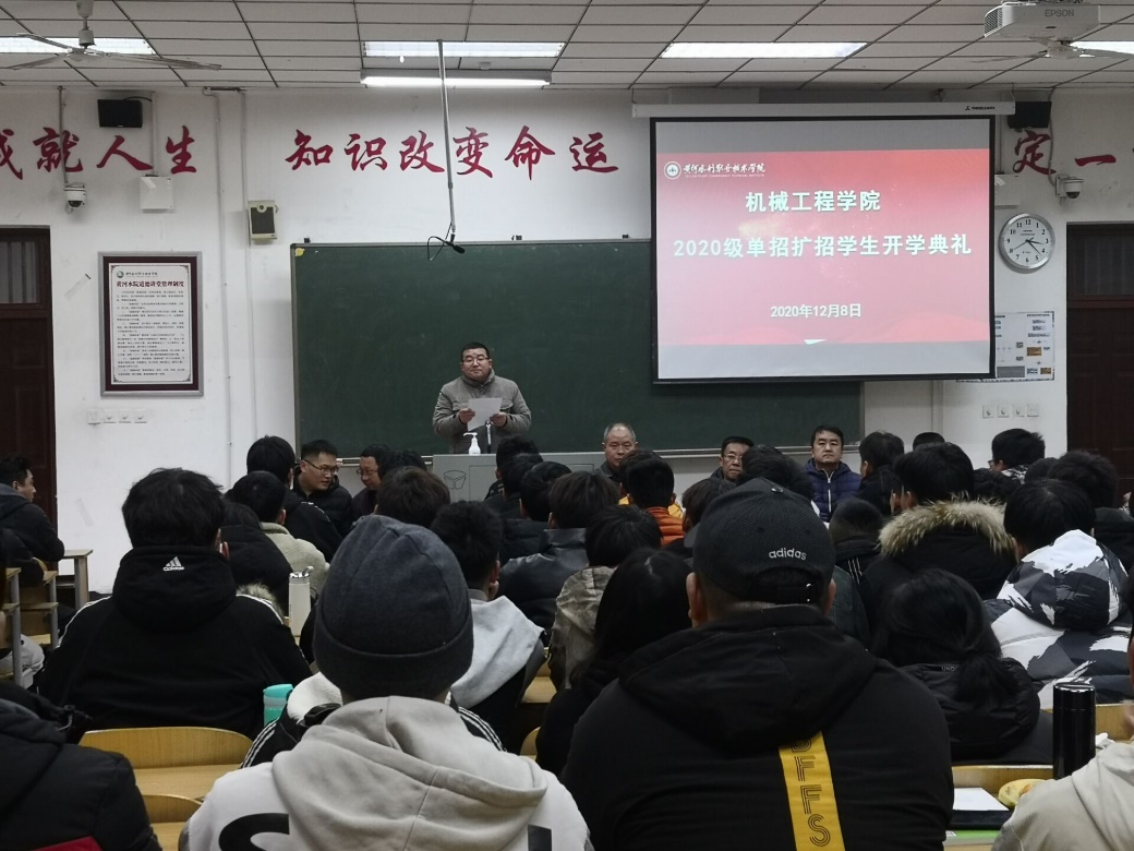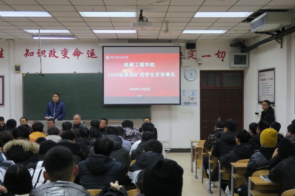 12月8日下午,机械工程学院在JX6103室隆重举行2020级单招扩招学生开学典礼。学校副校长杨士恒、学院领导班子成员出席典礼,学院教师代表、学生辅导员和2020级单招扩招学生参加典礼。典礼由院总支办主任(分团委书记)张宏祥主持。