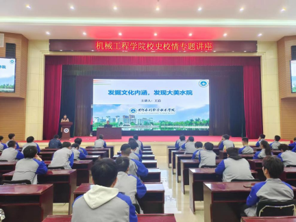 为使我院广大师生进一步了解学校发展历史,充分发挥校史校情文化育人功能,增强全院师生爱校、兴校的责任担当。机械工程学院于2023年4月18日下午4点在大学生活动中心报告厅举办校史校情专题讲座。本次讲座诚邀我校马克思主义学院王启副教授讲授。机械工程学院全体学工人员、团学干部、学生党员及2022级新生参加本次讲座。