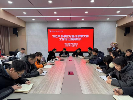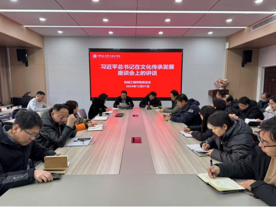 12月31日下午,机械工程学院在5号实训馆5211会议室组织专题学习活动,学习习近平总书记对宣传思想文化工作作出重要指示和习近平总书记在文化传承发展座谈会上的讲话等内容。学院全体教职工参加学习会。