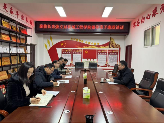 210午,副校长朱焕立在5号实训楼5210室对机械工程学院领导班子廉政谈话。