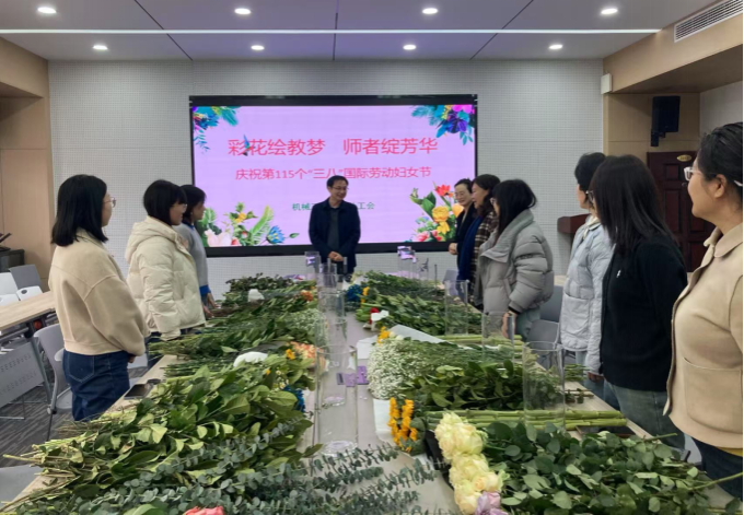 在第115个“三八”国际劳动妇女节来临之际,机械工程学院分工会于3月7日下午在学院会议室举办了主题为“彩花绘教梦 师者绽芳华”的插花活动。学院全体女教职工参加了此次活动,共同庆祝属于自己的节日。