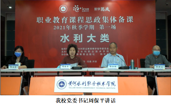 9月12日,由我校主办的职业教育水利大类专业课程思政集体备课在我校成功举办,全国水利职业教育教学指导委员会、水利行业特邀领导及专家、水利大类专业国家级课程思政示范课程教学名师和来自全国30多所水利职业院校的2000余名教师参加了集体备课,我校党委书记周保平参加集体备课并讲话,党委副书记、工会主席杨士恒主持集体备课。我校各教学单位组织教师集中参加了此次线上集体备课。