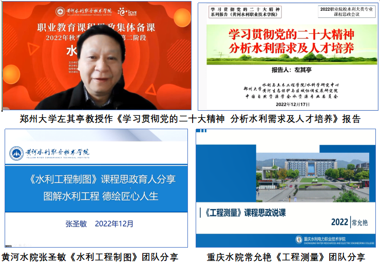 全国职业院校水利大类专业课程思政集体备课是水利职业院校学习贯彻党的二十大精神和习近平新时代中国特色社会主义思想,落实教育部《高等学校课程思政建设指导纲要》文件精神的具体举措,通过集体备课、说课、教学展示、交流研讨、专家点评,有力助推了职业教育水利大类的专业课程思政建设工作。