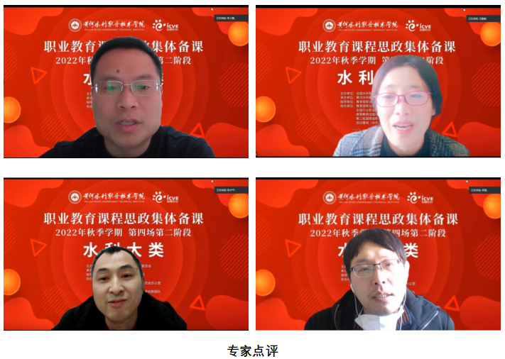 集体备课活动特别邀请了河南职业技术学院教务处处长李小强、重庆水利电力职业技术学院水利工程学院院长张守平,我校测绘工程学院副院长何宽、水利工程学院王勤香教授等4位国家级课程思政示范课负责人,以及我校马克思主义学院资深思政课教师孟卫兵等7名知名专家,与会专家高度评价了水利职业院校的课程思政建设情况,对水利专业课程思政说课和教学展示进行了现场点评和悉心指导,并与参加活动的水利类专业教师就与课程培养目标契合的思政元素的挖掘、思政元素的融入、思政案例的选树、知识技能培养目标与育人目标的达成效果等进行了深入的交流和研讨,取得了良好的效果。
