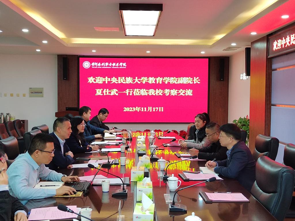 11月17日,中央民族大学教育学院副院长、博士生导师夏仕武一行,在河南省教育科学规划与评估院职业教育监测与评估室主任崔自杰的陪同下到我校调研产教融合校企合作工作。学校副校长朱焕立及教务处、科技处和部分二级学院领导参加了此次调研座谈会。