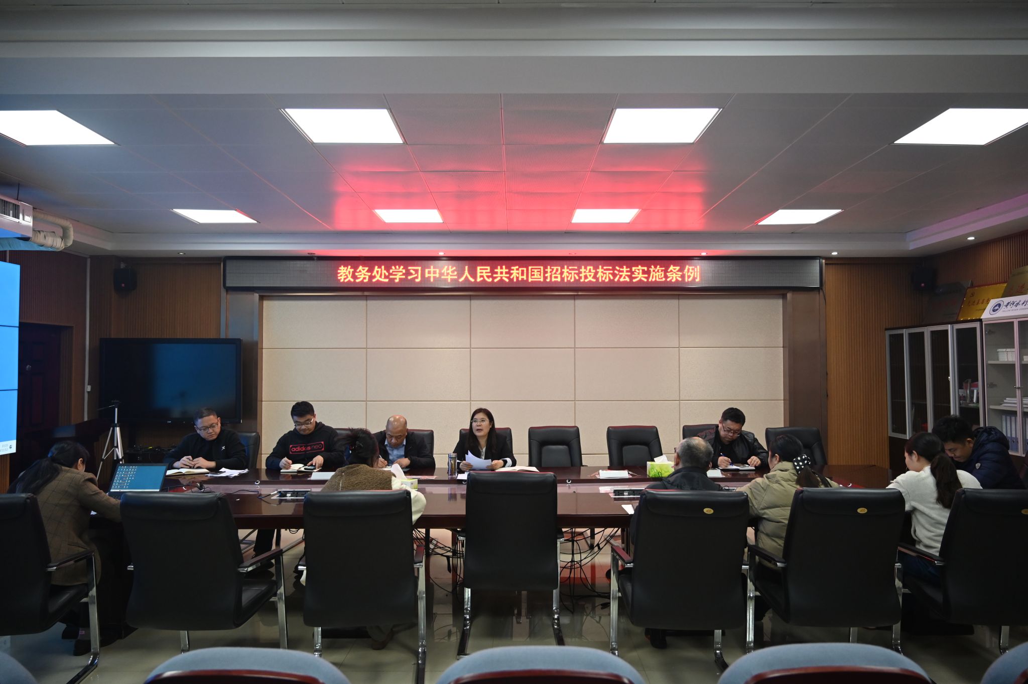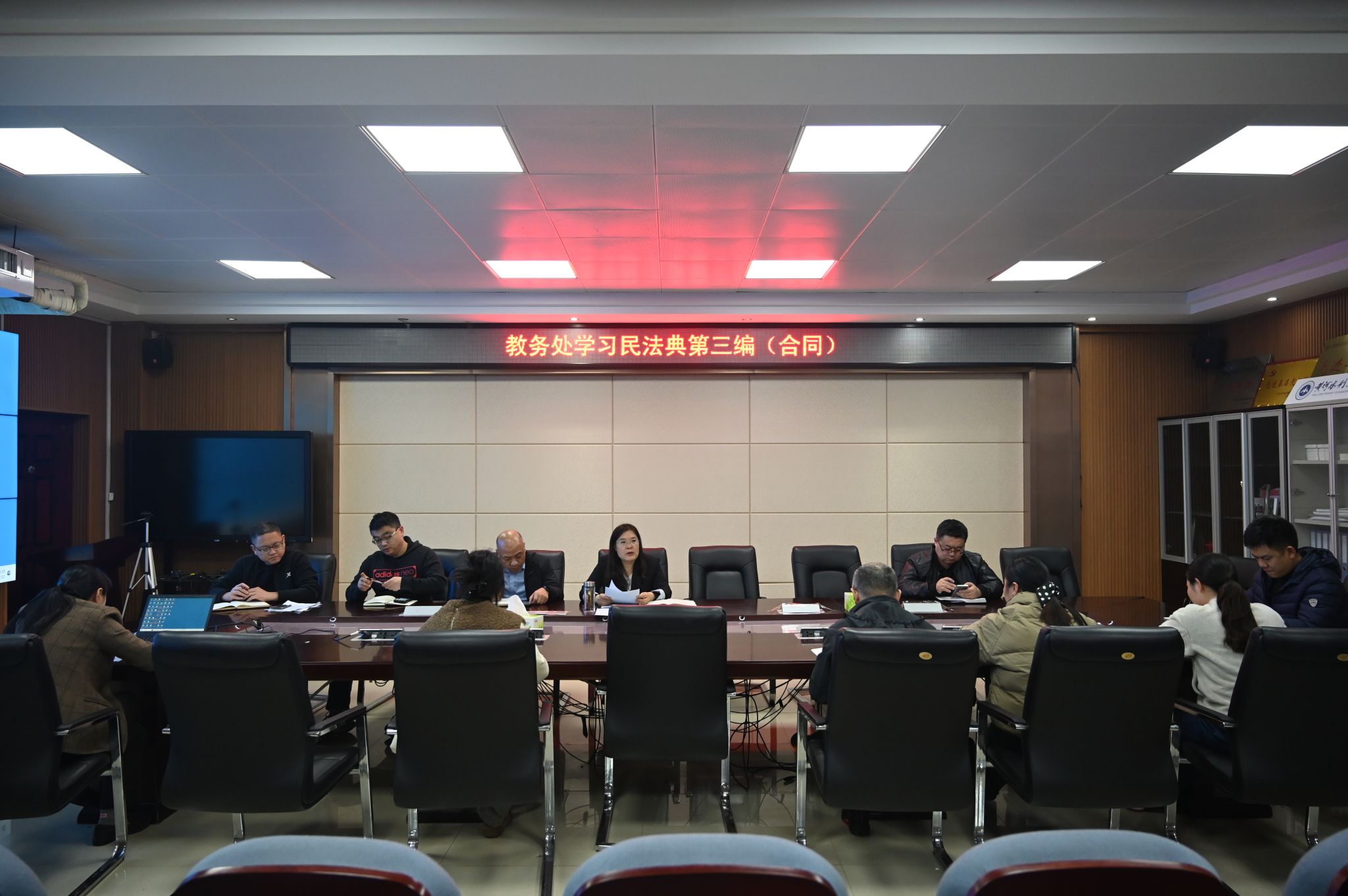 为推进落实巡视整改任务,提高自身业务工作水平,2024年11月12日,教务处组织全体教职工在教务处会议室学习了《中华人民共和国民法典》(第三编 合同)和《中华人民共和国招标投标法实施条例》。教务处处长陶永霞主持会议,教务处全体教职工参加会议。